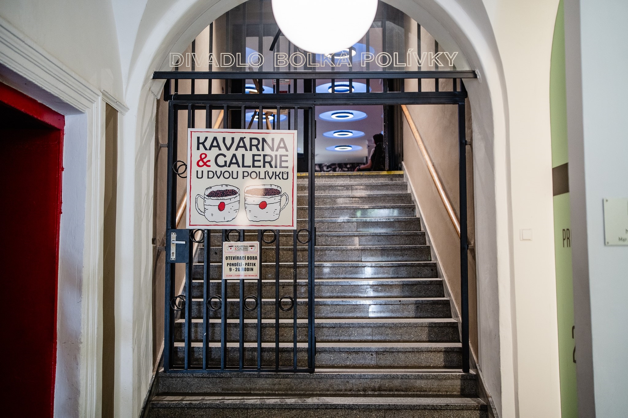 KAVÁRNA & GALERIE U DVOU POLÍVKŮ se nachází v prostorách foyer bývalé budovy divadla na Jakubském náměstí 5. Jedná se o příjemné, klidné místo v srdci pulzujícího Brna, kam se můžete přijít podívat na nejrůznější druhy umění, vychutnat si kávu se zákuskem anebo jen v klidu pracovat, aniž byste opustili centrum městského dění.